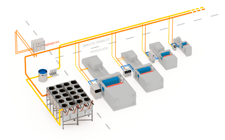 Las unidades Microgel pueden conectarse a un sistema central de enfriamiento de agua industrial Ecodry, formando una estructura integrada de enfriamiento y control de temperatura para toda su planta. El Sistema Ecodry optimizará los costos de energía y el rendimiento del enfriamiento, garantizando la máxima productividad y el control de todo el proceso.